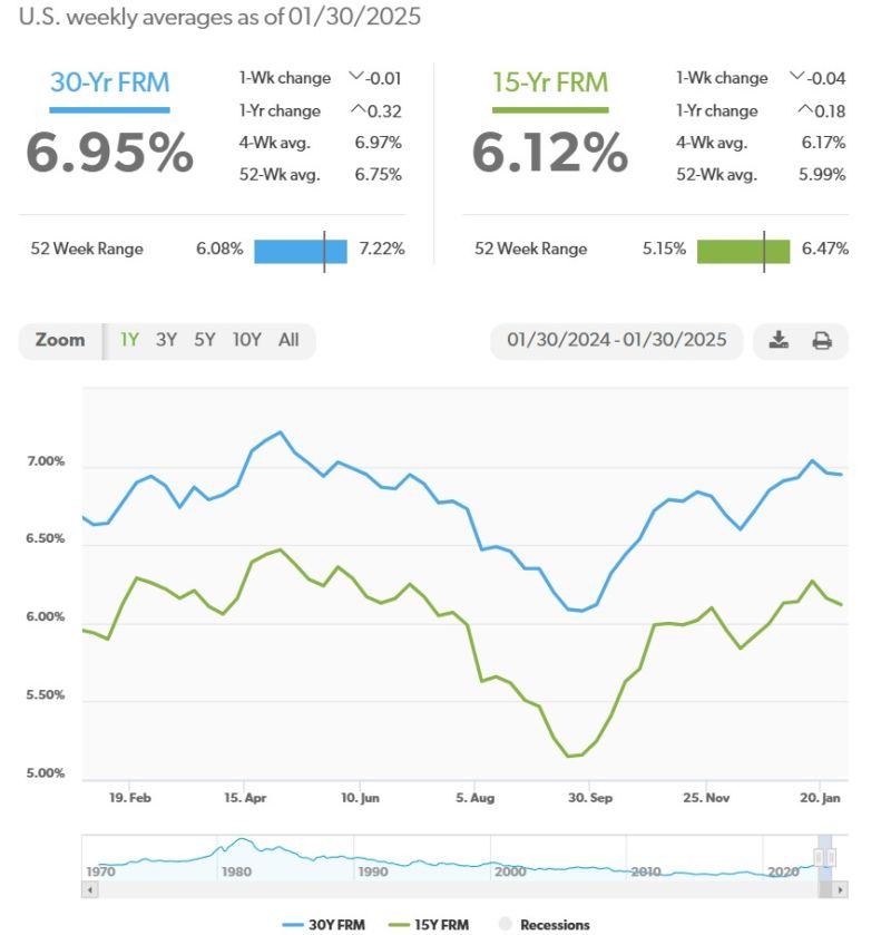 本周 30 年期固定利率抵押贷款利率继续维持在高位,略低于 7%。受高利率和供应短缺的影响,许多潜在购房者仍在观望。预计2025年的利率只会小幅下降。