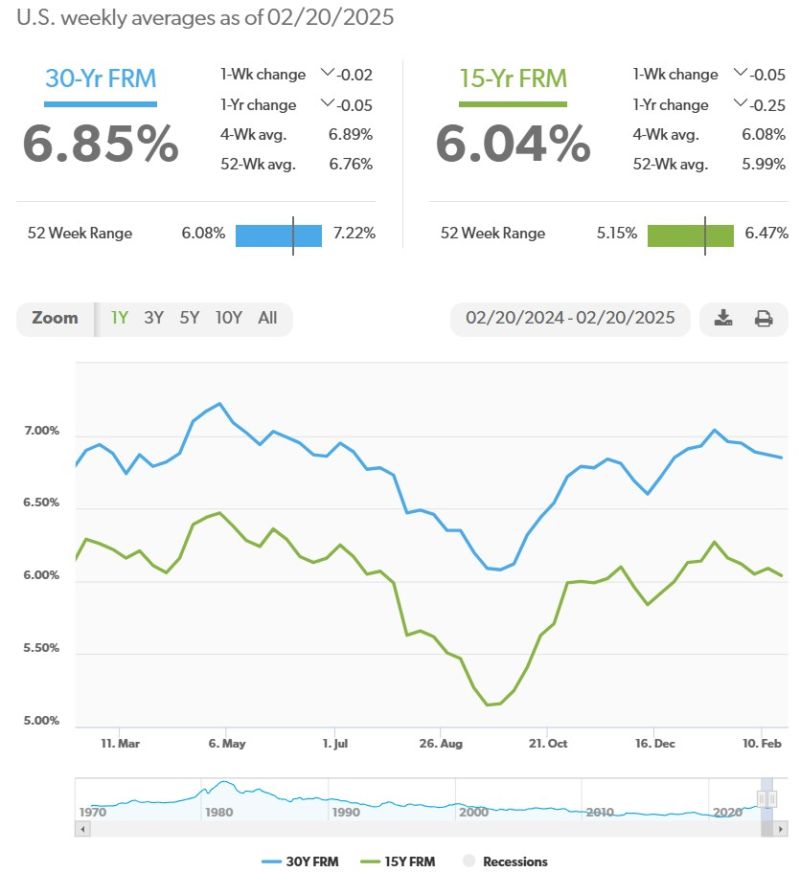 本周,30 年期固定利率抵押贷款继续小幅下跌。近期抵押贷款利率稳定,这对潜在买家有利,同时部分潜在购房者仍在观望中。预计2025年的利率只会小幅下降。