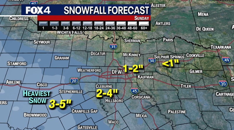根据FOX 4电视台天气小组的说法,达拉斯和德克萨斯州北部的部分地区可能在周日看到可测量的降雪——冬季风暴将在周日影响德克萨斯州,只是不确定德克萨斯州的哪些地区会受到影响。