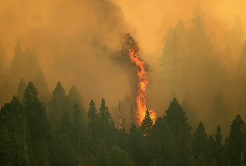 美国加州红杉国家公园(Sequoia National Park)遭遇野火侵袭,消防直升机从空中进行灌救,消防人员也紧急用铝箔防火毯包覆保护世界上最巨大的树——薛曼将军树(General Sherman)。