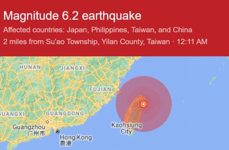 10月24日,星期天当地时间下午1时11分、12分,台湾宜兰发生连2起地震,规模6.5及5.4(美国地质调查局USGS监测到为6.2级)。规模6.5是这个地区约1973年来隐没带最大地震,所幸到本文截稿时,并未传出重大伤亡报告。