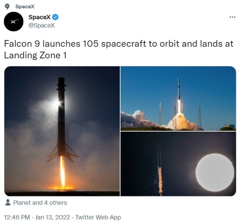1月14日本周四,美国SpaceX公司成功进行了今年第二次轨道发射,利用多次回收的助推器将105颗微型卫星送入轨道,然后成功实现第十次着陆。此次任务名为Transporter-3,是SpaceX第三次专门执行的微型卫星拼车发射任务。