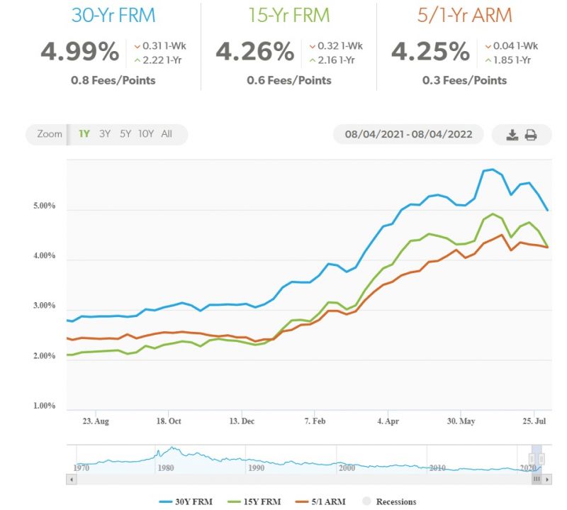 本周,美国房屋抵押贷款利率在近四个月内首次跌破5%。30年期的平均利率从上周的5.3%降至4.99%。这是自今年4月初以来的最低水平,也是自7月初以来的最大单周跌幅。随着利率上升、房价上涨、经济衰退风险增加以及消费者信心下降对购房者造成影响,购房需求继续下滑。现在,随着市场适应更高利率的环境,在市场正常化之前,预计2022年美国房价增长将放缓。
