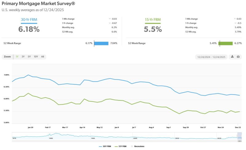 本周,30年期固定利率抵押贷款的平均利率进一步下降。利率下降对有购房意愿的人来说无疑是一份及时且令人欣喜的礼物。对于中等价位的房屋而言,与今年早些时候相比,可以让购房者每年节省数千美元。屋主也注意到利率持续走低,这推动了再融资活动的增加。预计2026年的利率会继续小幅下降。