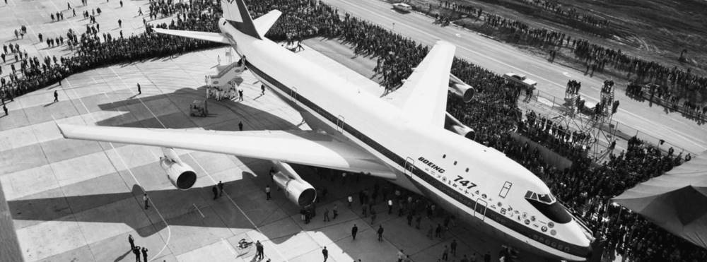 波音747,1965年开始开发设计,1970年投入服役,到2007年A380投入服务之前,波音747保持全世界载客量最高飞机的纪录长达37年。波音747是一款半双层四发动机飞机,能够用来载客、载货、军事和其它用途,例如作为美国总统的“空中一号”。747的客机型号可以增加额外座位,三级座舱设计(即是分为经济,商务和头等舱)的载客量达到416人,而双级舱设计的载客量则高达524人。