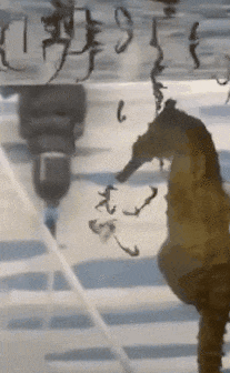 视频中,一只海马爸爸在水族箱内鼓着大肚子把小宝宝从育儿袋内喷射出去,小海马们从爸爸的肚子里扎堆出世,画面让人忍俊不禁。