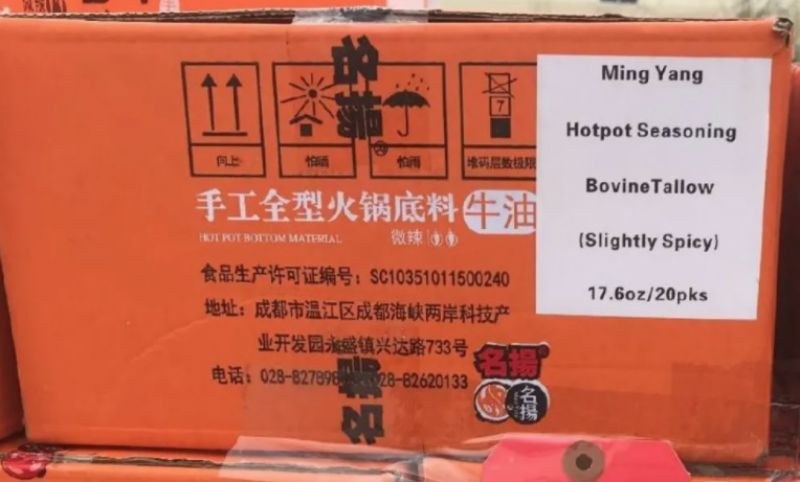 2月22号,美国农业部食品安全检查局(Food Safety and Inspection Service)发布一份声明,在全美范围内召回近10万磅“名扬”(Ming Yang)牛油火锅底料。该火锅底料已经在亚利桑那州,加利福尼亚州,夏威夷州,内华达州,纽约州和德克萨斯州的分销商、零售店和饭店出售。