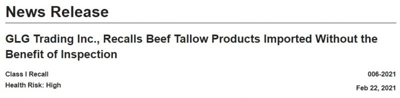 这次召回的等级被列为一级(最高级别,食用后可能对人体健康造成严重危害或死亡),目前还没有消费者患病的报导。这些火锅底料由加州GLG贸易公司从中国进口。产地为中国四川的“名扬”(Ming Yang)牛油火锅底料,生产过程没有经过适当程序,问题成分是牛肉脂肪(牛油)。还有说法是问题出在进口手续方面,目前GLG贸易公司正在与美国海关、食品安全检查局协调中。