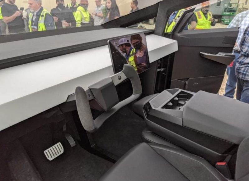 图片显示,这辆全电动皮卡车身采用不锈钢材质,内饰也格外的简洁科幻,实车和原型车几乎一模一样。