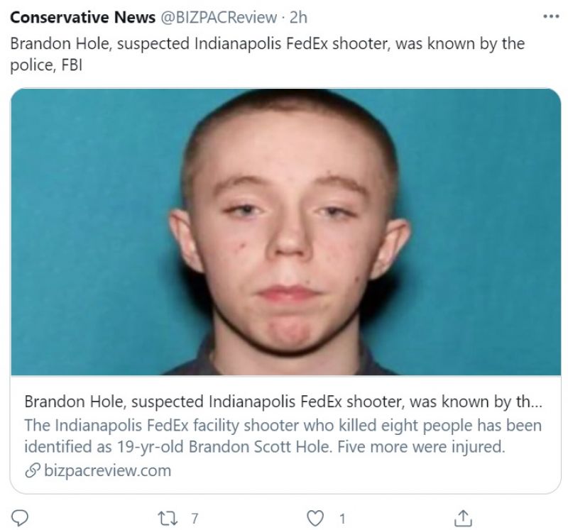 4月15日晚,美国印第安纳波利斯国际机场附近一处联邦快递设施内发生枪击事件,造成至少8人死亡,5人受伤的凶手,据警方16日公布的最新资料,枪手是去年离职的19岁前员工布兰登·霍尔(Brandon Hole)。查看新闻:印第安纳波利斯联邦快递中心枪击案 至少8人死亡。